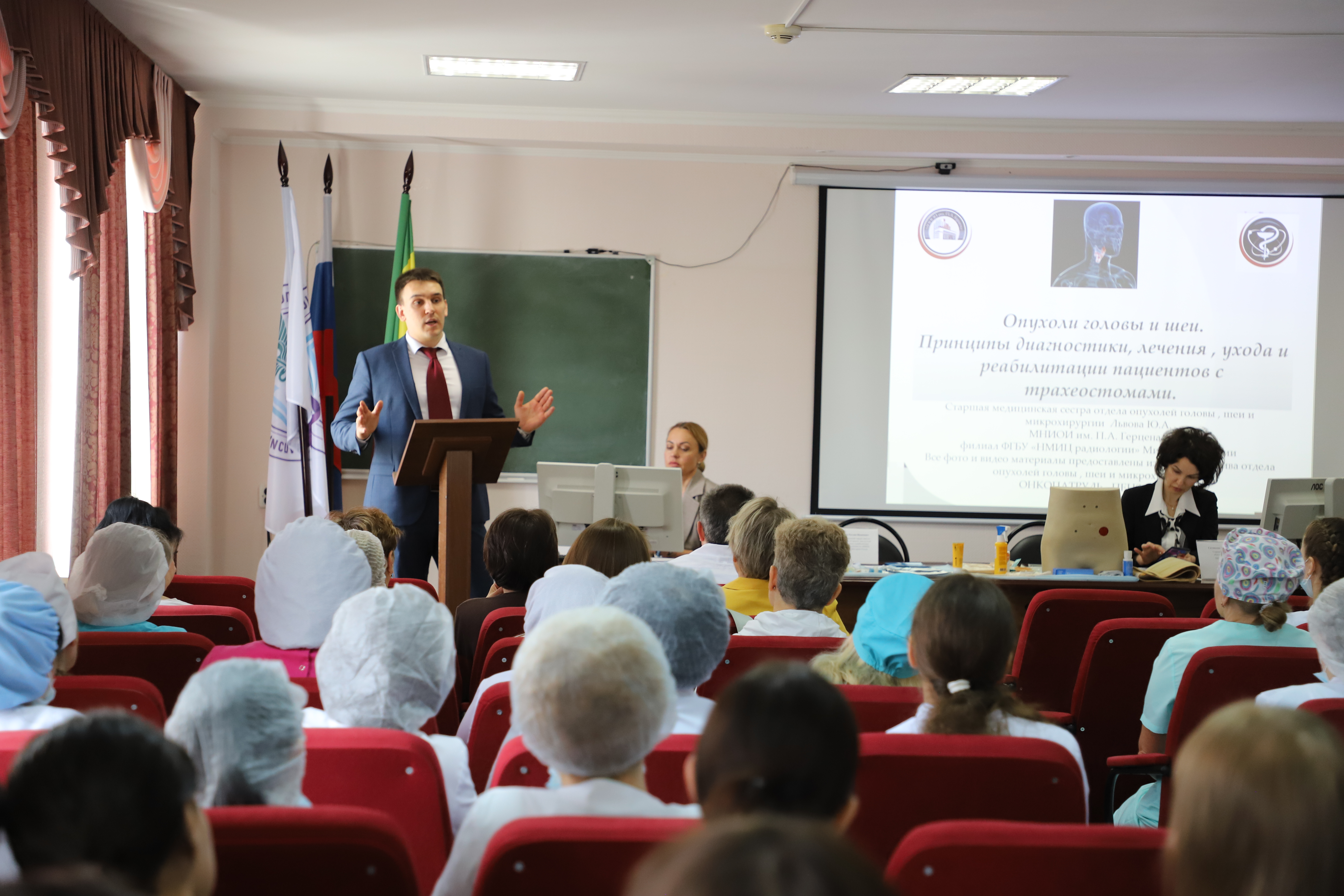 В первый день на базе Областного онкологического диспансера состоялся уникальный мастер-класс к.м.н. А.С. Водолеева для практикующих врачей- эндоскопистов. Параллельно специалисты Ю.А. Львова, Т.А. Ситникова и Р.И. Мошуров провели семинар для фельдшеров и медицинских сестер по реабилитации стомированных пациентов. Столичные эксперты не только поделились актуальной информацией, но и провели интерактивный опрос, ответили на вопросы аудитории и помогли развенчать распространённые мифы.