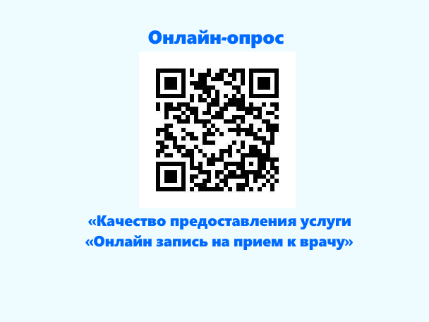 Пройти онлайн-опрос «Качество предоставления услуги «Онлайн запись на прием к врачу» можно также посредством QR-кода.